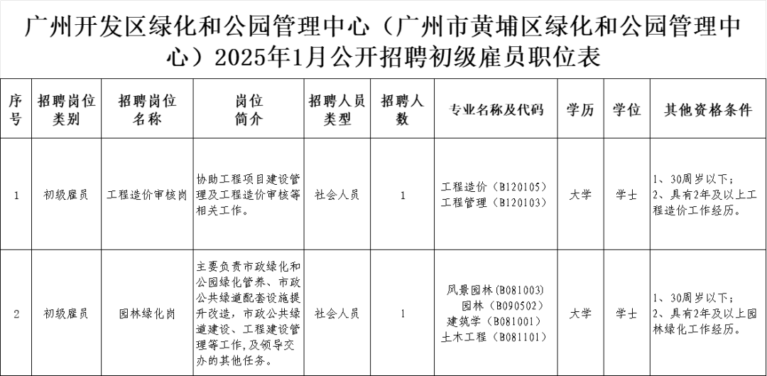 广州开采区绿化和公园贬责中心(广州市黄埔区绿化和公园贬责中心)招聘低级雇员2名