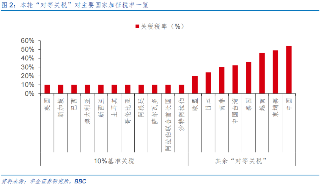 🔷好意思国“平等关税”加征幅度超预期。(1)这次好意思国加征关税战略包括:一是对所有国度征收10%的“基准关税”;二是对好意思国买卖逆差最大的国度征收个性化的更高的“平等关税”;三是一些商品将不受“平等关税”的管理。(2)对我国加征关税幅度超出阛阓的中性预期:对我国加征的关税税率定为34%,辩论到此前已两次加征10%的关税,现时对我国商品加征的关税可能达54%,超出阛阓的中性预期。