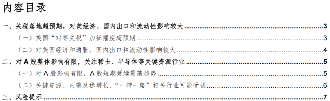 一、关税落地超预期,对好意思经济、国内出口和流动性影响较大