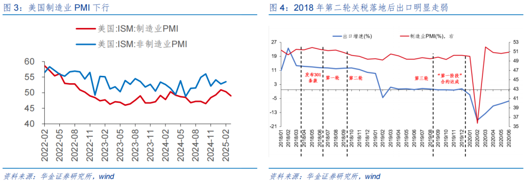 本轮加征“平等关税”可能对好意思国经济和通胀影响较大,对我国出口和流动性也可能有一定的影响。(1)加征关税可能对好意思国经济和通胀有较大影响。一是坐褥和糟践齐可能受到负面影响:最先,坐褥端来看,关税提高入口商品价钱,迫使好意思国企业减少入口,转向好意思国脉土坐褥或非关税国度采购,短期内可能刺激部分原土产业,但恒久可能因替代泉源成本更高导致坐褥恶果下落,现时好意思国制造业PMI已低于枯荣线;其次,糟践端来看,住户可主管收入下落,关税推高商品价钱(如日用品、电子产品),糟践者内容购买力缩水下非必需品糟践减少,而糟践对好意思国GDP的孝敬不行小觑,可能进一步牵累经济增长。二是好意思国通胀压力可能上升:最先,关税平直增多入口成本,企业通过提价转嫁糟践者;其次,加征关税导致糟践品价钱上升后,工资水平可能进一步上升。(2)加征关税对我国出口和流动性也有一定的影响。一是加征关税可能导致我国出口增速面对一定的回落压力:最先历史警戒来看,逐轮、大额的关税加征对我国出口有一定影响,比照2018年,第二轮加征关税(USTR对中国2000亿好意思元商品加征10%关税,主要触及电子、纺织、金属成品、汽车零部件以及箱包、产品、灯具等糟践品)后国内出口增速出现显著回落;其次,本年好意思对中国加征关税的范围和幅度更大,同期对东南亚等新兴阛阓国度也加征“平等关税”,我国出口增速可能面对一定压力。二是加征关税对我国流动性宽松可能存在一定扰动:最先,加征关税可能推升好意思国通胀,对好意思联储降息周期可能有影响;其次,加征关税可能导致国内出口有一定压力,东谈主民币汇率波动可能对国内宽松战略有一定制肘。